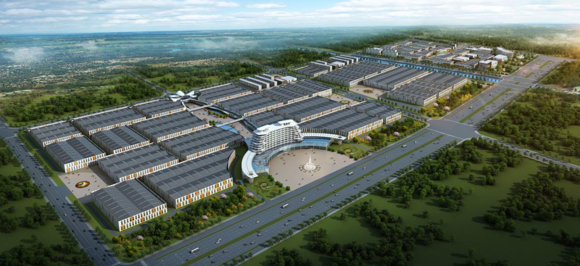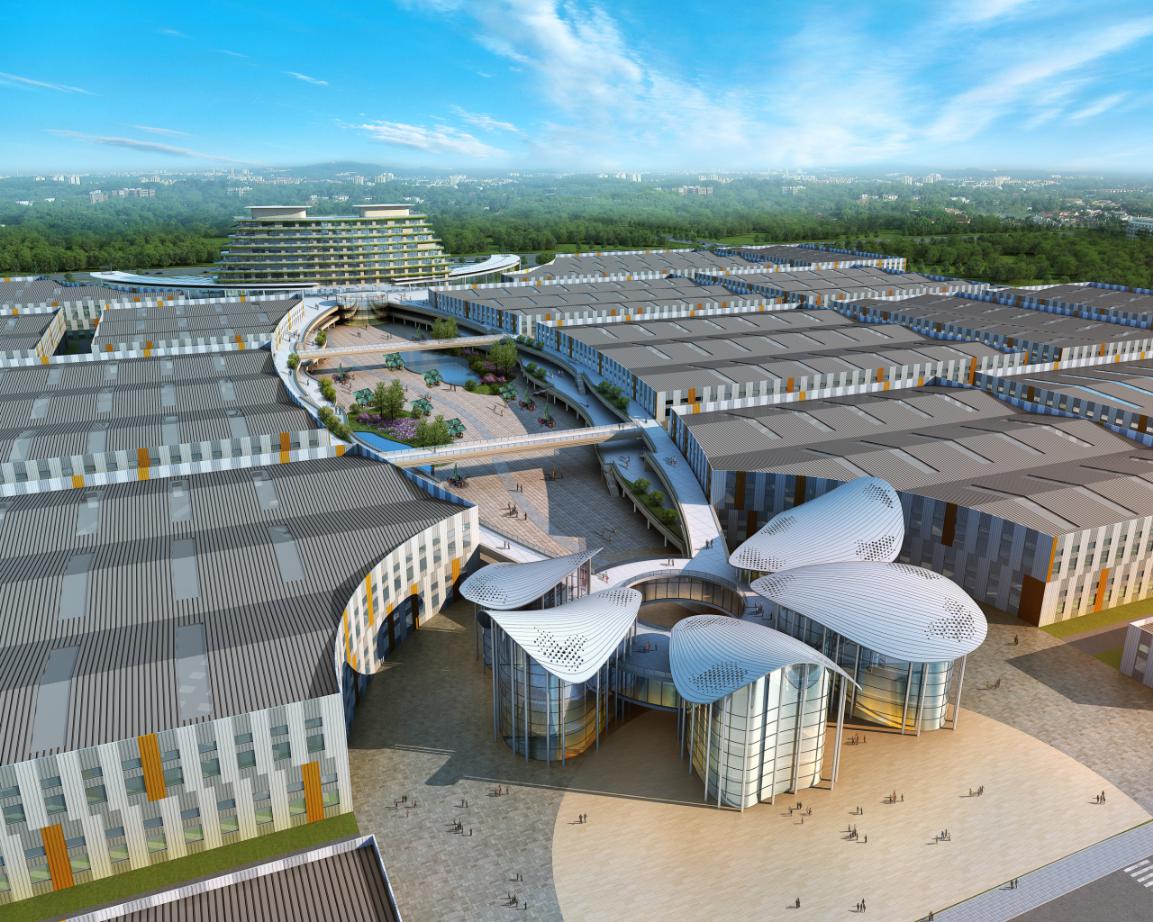 建设规模:总用地面积1050亩,总建筑面积91万平方米,功能涵盖办公、展示、会议中心、酒店、检测中心、服务中心、物流库房、生产厂房、宿舍等。